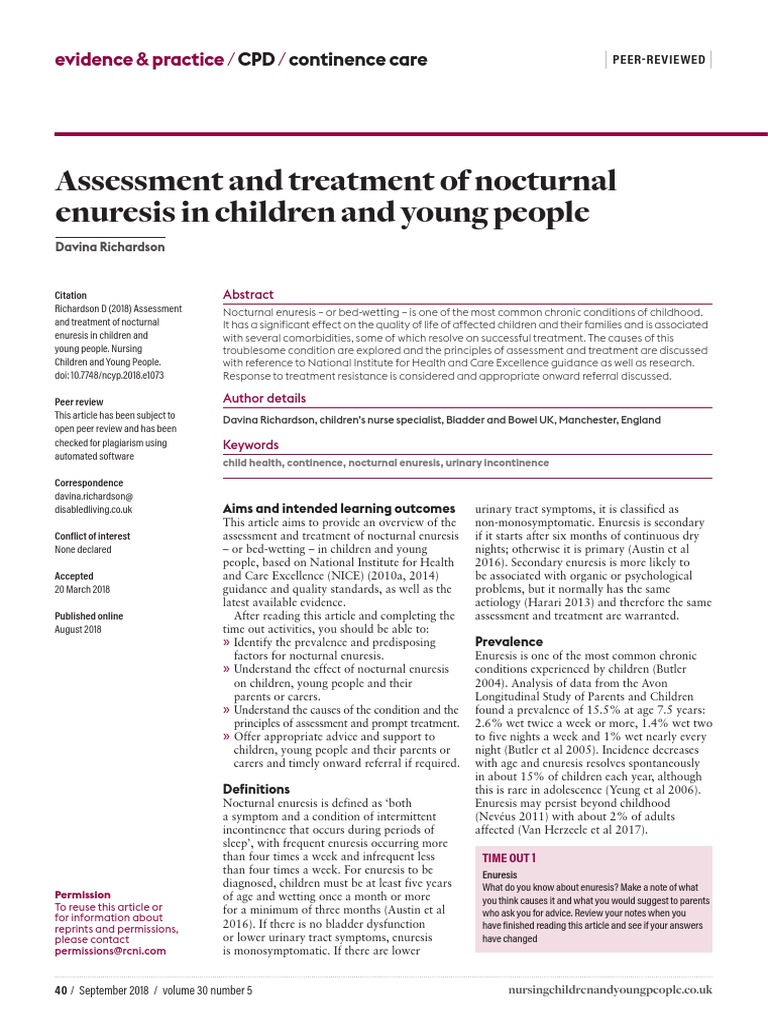 Assessment and Treatment of Nocturnal Enuresis in Children and Young People Elemente de Nursing